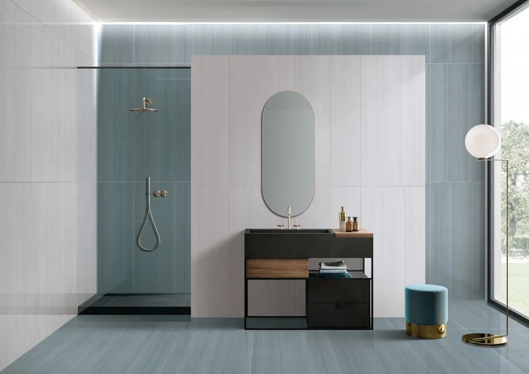 If you want to create a space with personality and a sense of hierarchy, you can choose two different colors of "Brock" for the decoration of the bathroom wall or dry and wet area.
