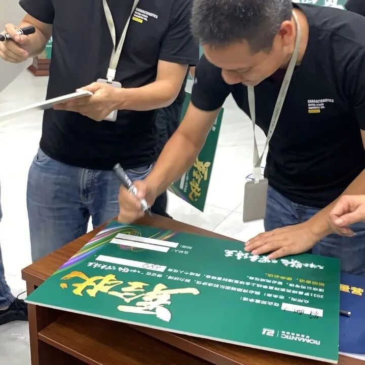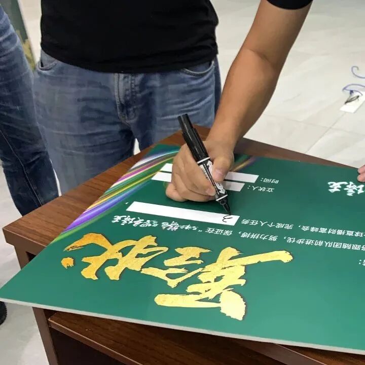 分享过后,正式进入招商启动仪式,全体销售精英,进行目标确认和宣誓环节,每个成员郑重签下军令状,制定小组PK龙虎榜,用实际招商结果说话!