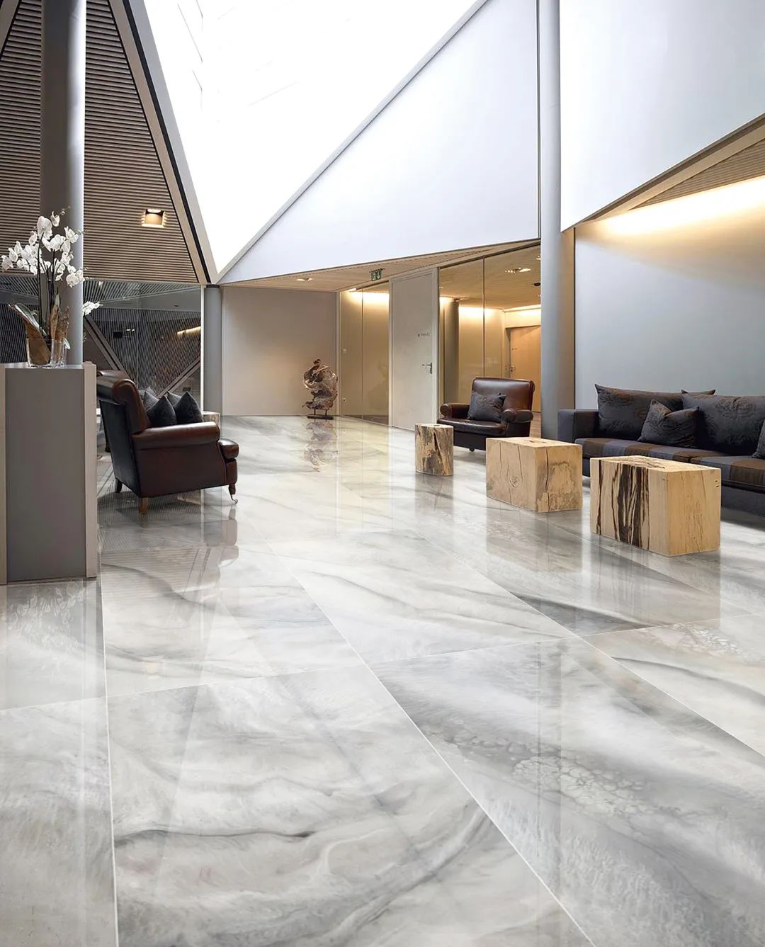 900*1800大规格从墙面延伸下地,应用在星级酒店场所,高端大气上档次。