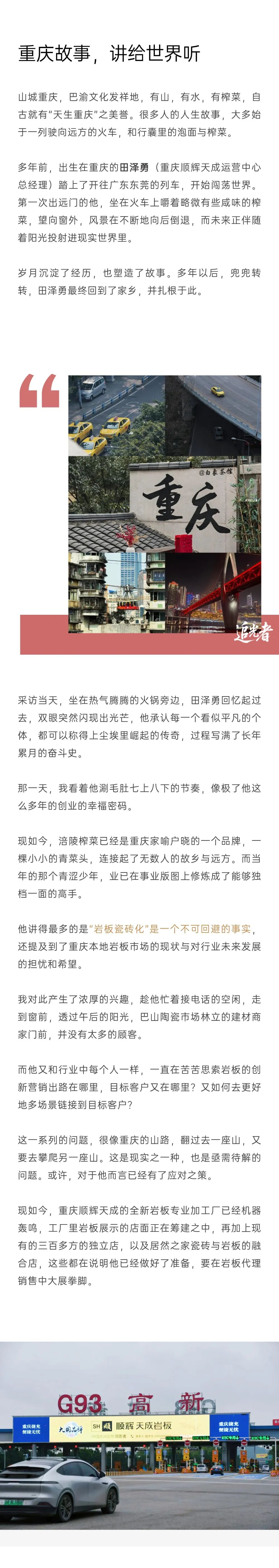 顺辉天成岩板追光者 Vol.2 | 重庆田泽勇:岩板瓷砖化的融合之道和样本价值